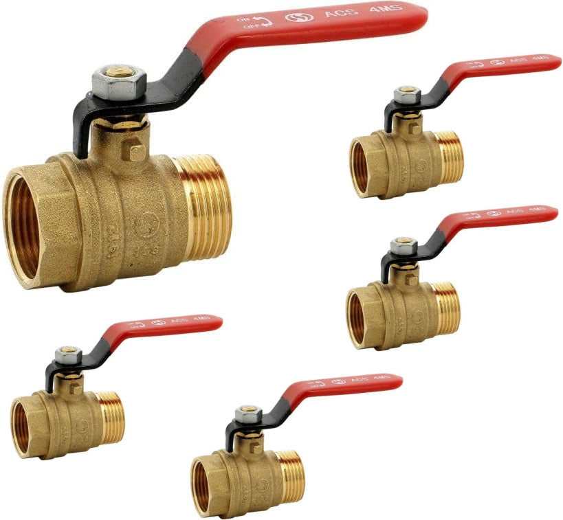 Vanne sphère laiton titré 4MS 15S mâle femelle BSP poignée rouge 1/2'' - Lot de 5
